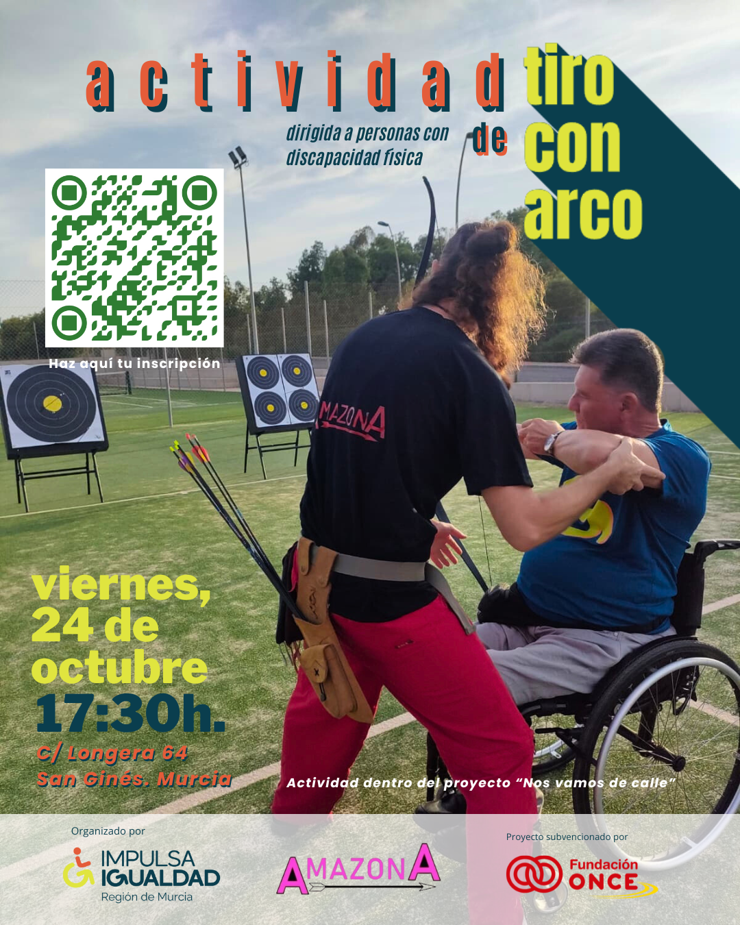 La cita será a las 17:30 h en C/ Longuera 64, San Ginés (Murcia), donde la Asociación Deportiva Amazona Arqueras guiará a los participantes en una sesión de tiro con arco adaptado. La actividad está diseñada para que personas con y sin discapacidad física puedan disfrutar juntas de una experiencia lúdica, deportiva y segura.